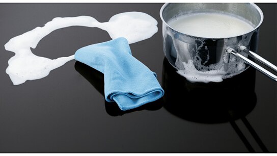 Nhờ độ phẳng, trơn và luôn nguội của bề mặt, thức ăn tràn ra khi nấu cũng không bị bám két lại vào mặt bếp, giúp lau chùi dễ dàng và an toàn.