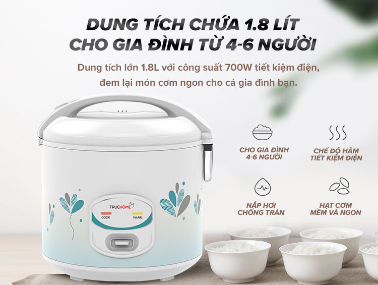 Nồi cơm điện TrueHome TR-18JE010(B) 1.8 lít - Chính Hãng - Giá: 459.000 - Liên hệ: 0913 119 845 - giao hàng miễn phí TP HCM - gọi cập nhật giá tốt hơn mỗi ngày✔️✔️✔️