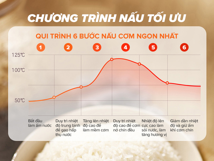Mâm nhiệt lớn, công suất cao giúp nấu nhanh hơn, hạt gạo chín đều hơn