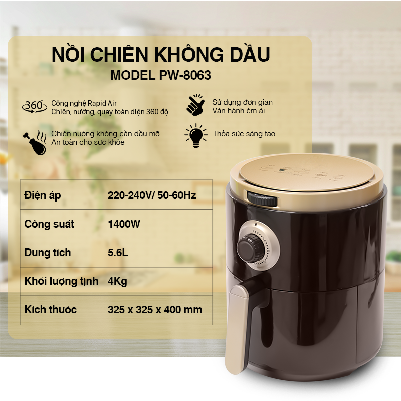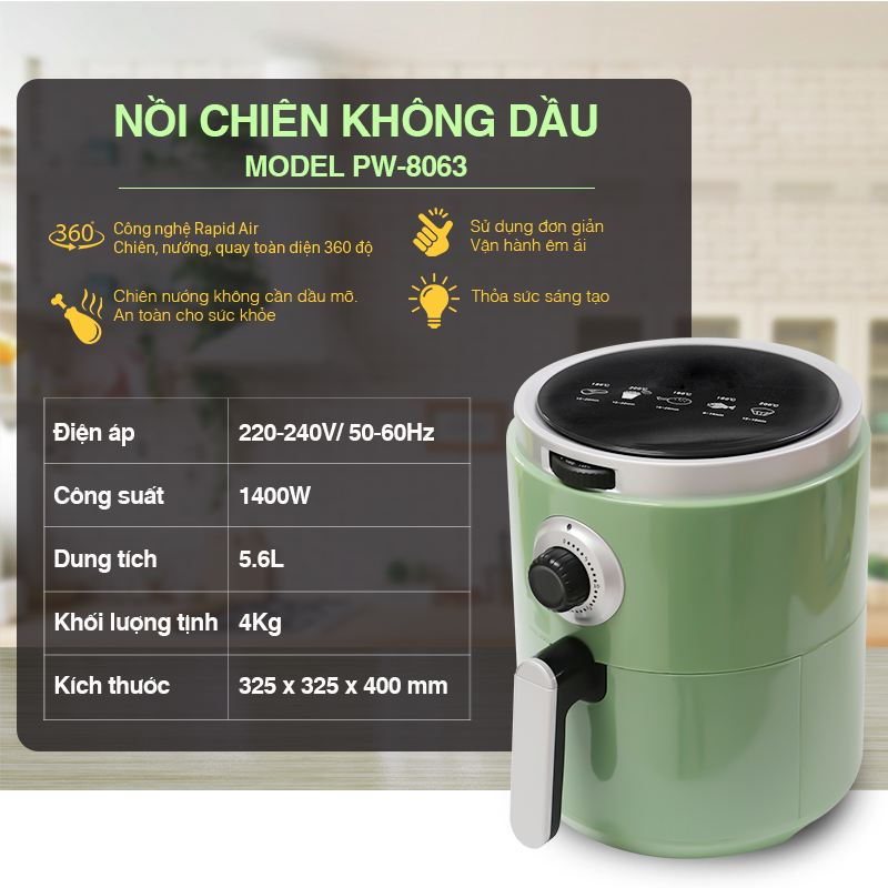 Nồi Chiên Không Dầu VietStar PW-8063 PW8063 Công Nghệ Rapido 5.6 Lít - Chính Hãng - Giá: 999.000 - Liên hệ: 0913 119 845 - gọi cập nhật giá tốt hơn mỗi ngày - giao hàng siêu tốc 4h cho gia dụng, tivi - 24h cho sản phẩm lớn