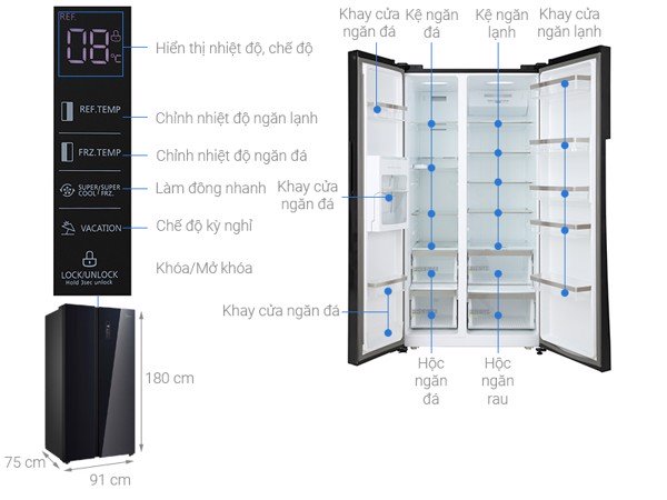 | Chất liệu | Màu sắc: Đen Chất liệu cửa tủ lạnh: Kính cường lực |